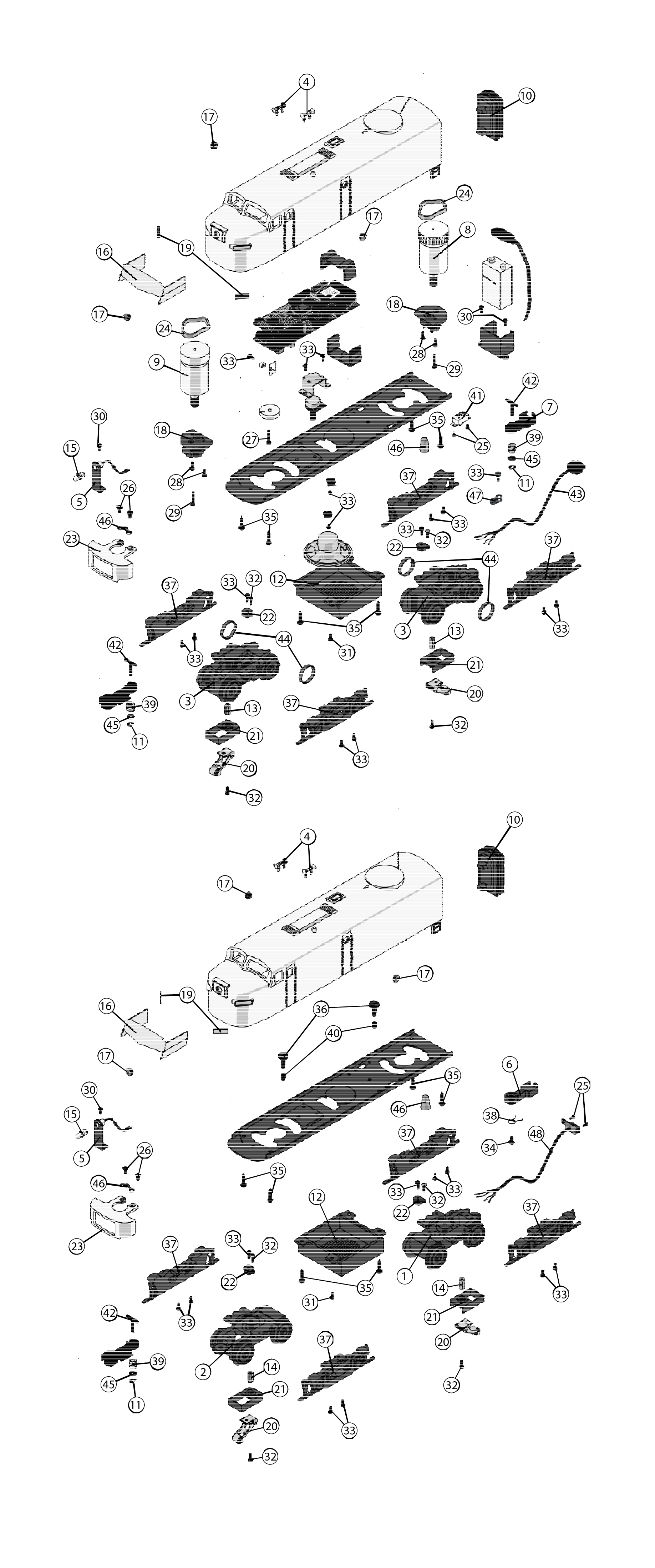 4-WHEEL TRUCK / NON-POWERED / OPEN / SHORT FRONT / BOTTOM MOUNT FRAMES / 2 HOLE PILOT MOUNT / TAPPED FOR PCB TETHER / USE DA-2000022 (Out of Stock) |